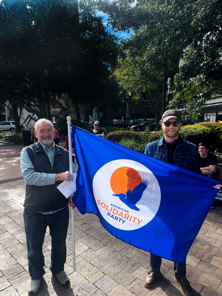 Joseph Thornton and Cole McCurdy represented the American Solidarity Party of Florida at the 2026 annual Florida March for the Preborn in Jacksonville. State Chairman Nick McNamara was also present and is pictured in the main photograph.
